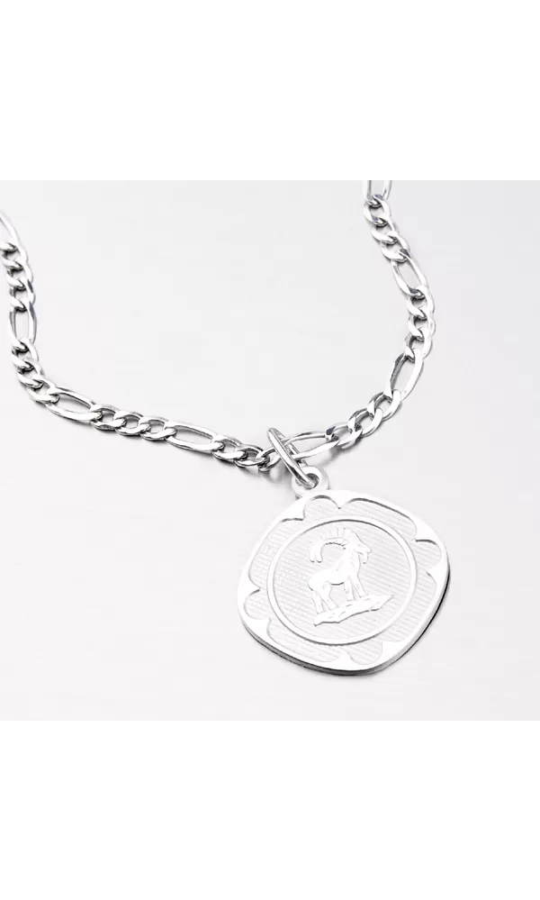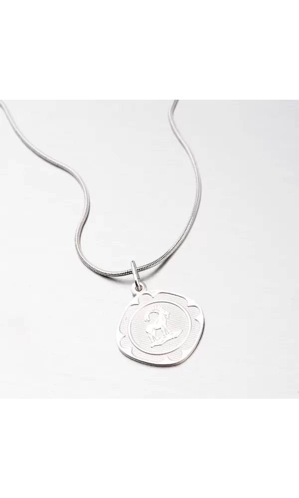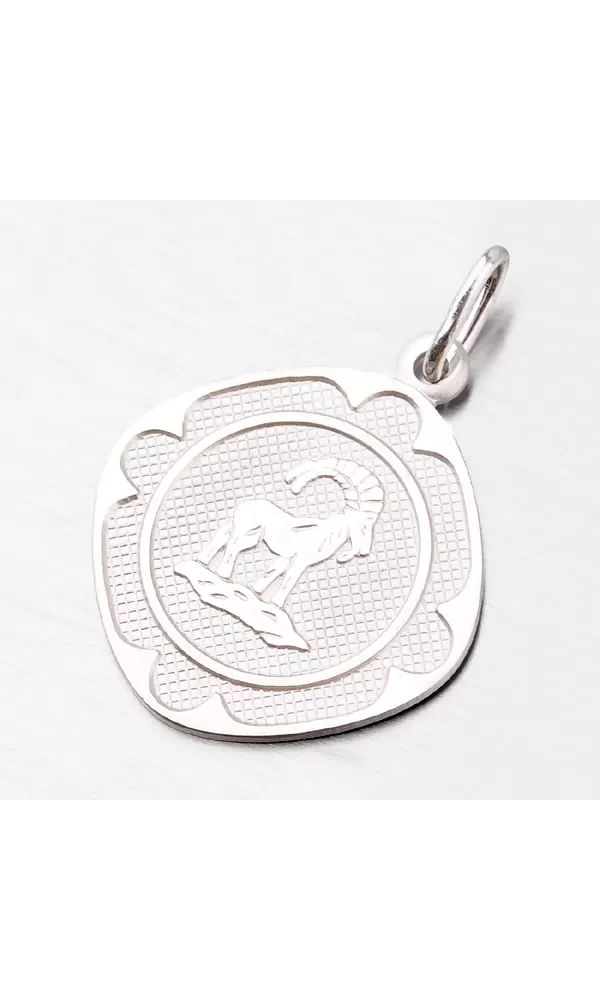 Prívesok s motívom zverokruhu - Baran (22.12.-20.1.) - je vyrobený zo striebra o rýdzosti 925/1000. Doštička je kosoštvorcového tvaru s lesklými okrajmi, zmatneným vnútrom a plastickým, taktiež lesklým znamením zverokruhu.