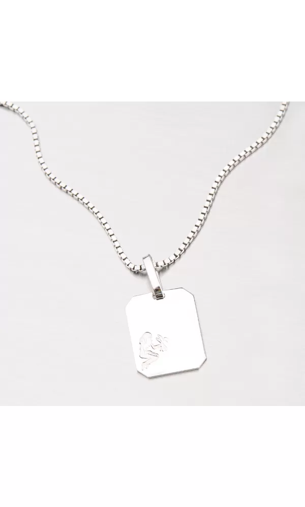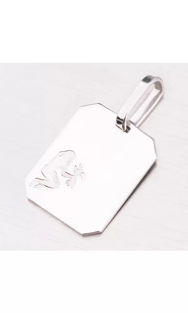 Prívesok s motívom zverokruhu - Panna (23.8. - 22.9.) - je vyrobený zo striebra o rýdzosti 925/1000. Doštička je obdĺžnikového tvaru v lesklej povrchovej úprave s vyrytým a zmatneným znamením. Pre vysokú odolnosť prívesku je povrch zušľachtený rhodiovaním. Ródium je ušľachtilý drahý kov zo skupiny platinových kovov. Rhodiovaním strieborných šperkov galvanickým nanášaním tohto drahého kovu sa stáva povrch šperku tvrdší, stálejší a odolnejší voči vonkajším vplyvom ako je mechanický oter, poškriabanie, nabiehanie striebra, ľudský pot, kozmetické prípravky a ďalšie. Ródium je antialergické.