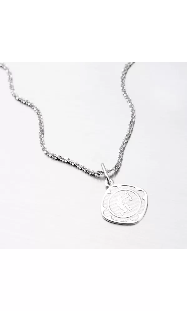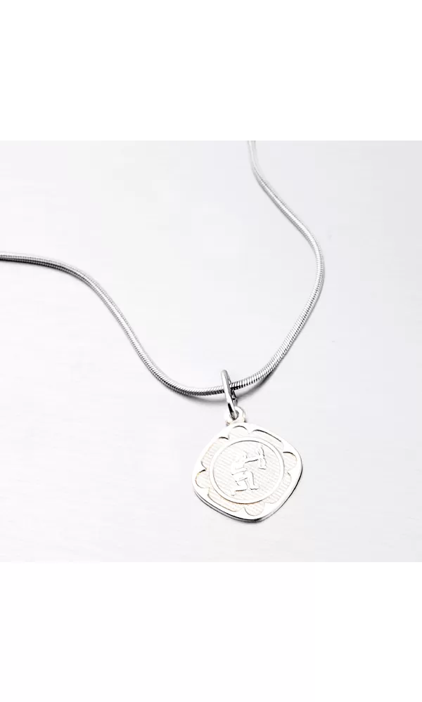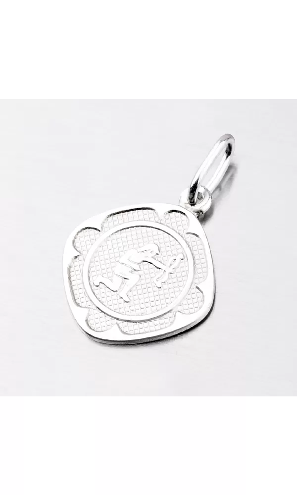 Prívesok s motívom zverokruhu - Strelec (23.11.-21.12.) - je vyrobený zo striebra o rýdzosti 925/1000. Doštička je kosoštvorcového tvaru s lesklými okrajmi, zmatneným vnútrom a plastickým, taktiež lesklým znamením zverokruhu.
