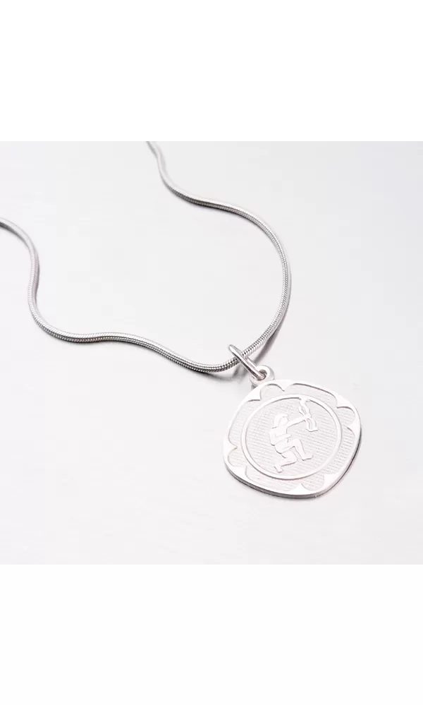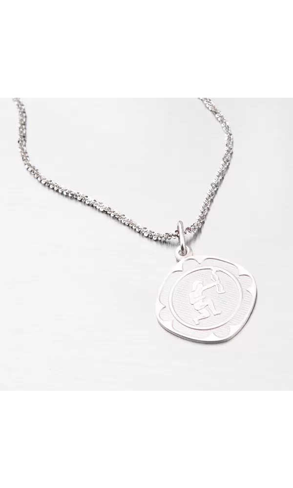 Prívesok s motívom zverokruhu - Strelec (23.11.-21.12.) - je vyrobený zo striebra o rýdzosti 925/1000. Doštička je kosoštvorcového tvaru s lesklými okrajmi, zmatneným vnútrom a plastickým, taktiež lesklým znamením zverokruhu.