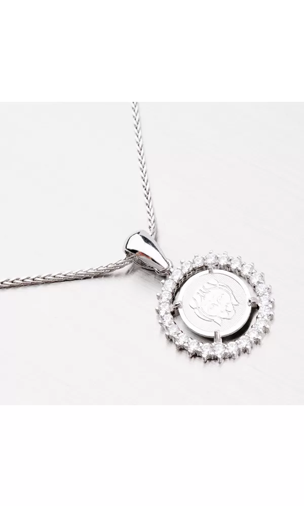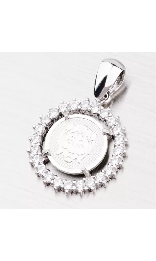 Tento nádherný prívesok okrúhleho tvaru s motívom znamenia zverokruhu - Lev (23.7.-22.8.) je vyrobený zo striebra rýdzosti 925/1000 v kombinácii lesklej a matnej povrchovej úpravy s rhodiovaním. Dookola je vysadený trblietavými zirkónmi, ktoré prívesok rozžiaria. K prívesku je vhodné použiť retiazku s max. priemerom 3 mm.