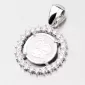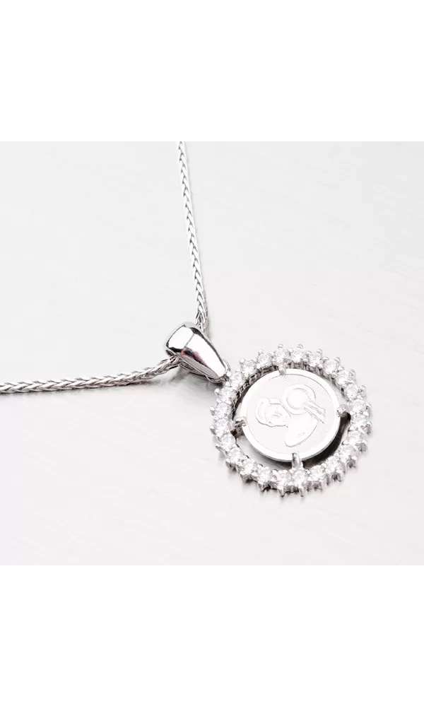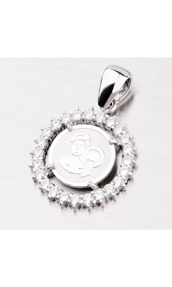 Tento nádherný prívesok okrúhleho tvaru s motívom znamenia zverokruhu - Vodnár (20.1.-18.2.) je vyrobený zo striebra rýdzosti 925/1000 v kombinácii lesklej a matnej povrchovej úpravy s rhodiovaním. Dookola je vysadený trblietavými zirkónmi, ktoré prívesok rozžiaria. K prívesku je vhodné použiť retiazku s max. priemerom 3 mm.