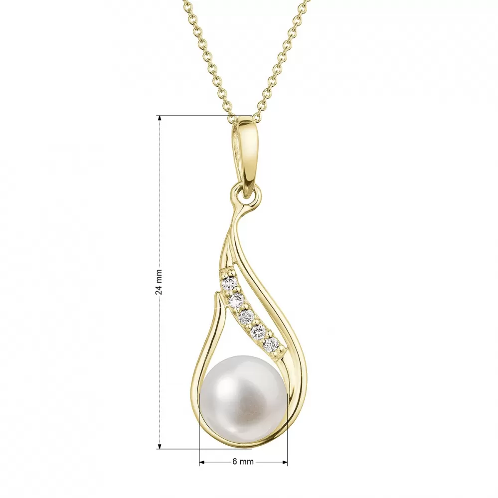 Použil sa náhrdelník 92pb00042 14 karátového žltého zlata s čistotou 585/1000 a skutočná rafinovaná perla sladkovodná rieka s brilliabmi . Pearl 6 mm je vysoká kvalita aaa . zlato je elegantne zdobené piatimi brilantmi 0,045 CT ..