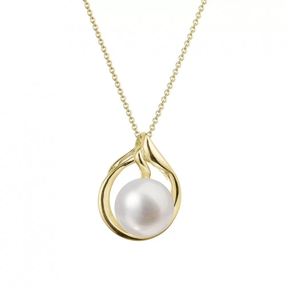 Zlatý 14 karátový náhrdelník žlté zlato s bielou riečnou perlou 92P00033