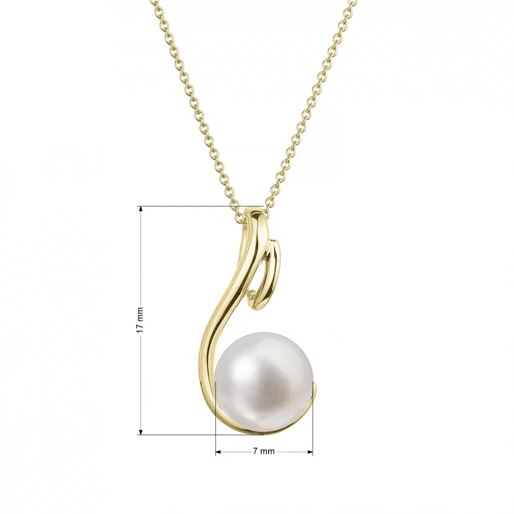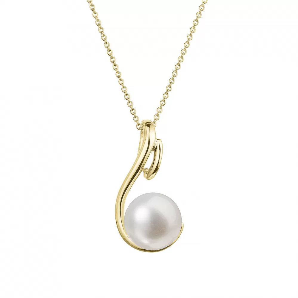 Zlatý 14 karátový náhrdelník žlté zlato s bielou riečnou perlou 92P00039