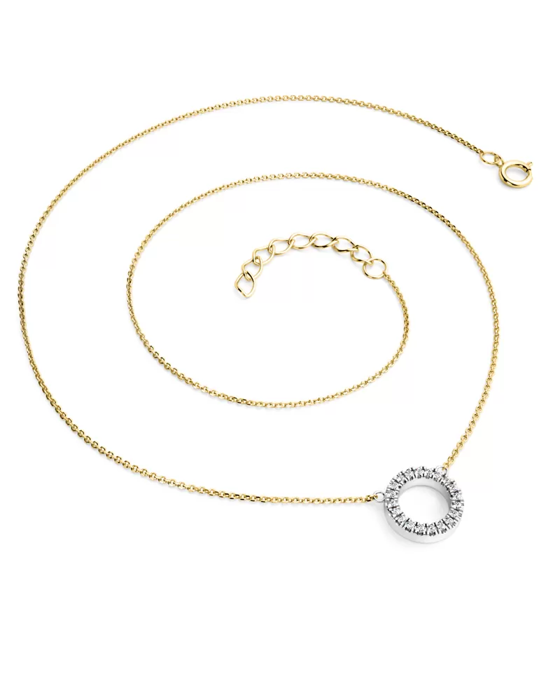 Elegantný náhrdelník sa vyrába v kombinácii bielej a žltej štrnástich -karátovej zlata - 585/1000 a pozostáva z reťazového typu Anker s lesklými fazetami na každom oku. Bazety sa vyrábajú pomocou diamantového nástroja, ktorý poskytuje výsledné aspekty maximálny lesk. Uprostred reťazca je pevný prívesok v tvare kruhu, v ktorom sú umiestnené dvadsať okrúhlych diamantov, zem s brilantným mletím. Brilantná Skore poskytuje diamanty maximálnu brilanciu leštenej fazety, dokonale odráža svetlo a krásne svieti zo všetkých pohľadov! Diamantové nastavenie vykonávajú naši najskúsenejší majstri ručne ručne pod mikroskopom s presnosťou 0,01 mm, a preto neexistuje riziko, že kamene padajú ako strojové šperky. Symbol kruhu má ochranný znak, kruh symbolizuje údržbu energie a tiež znamená posvätný priestor alebo symbol spojenia.
