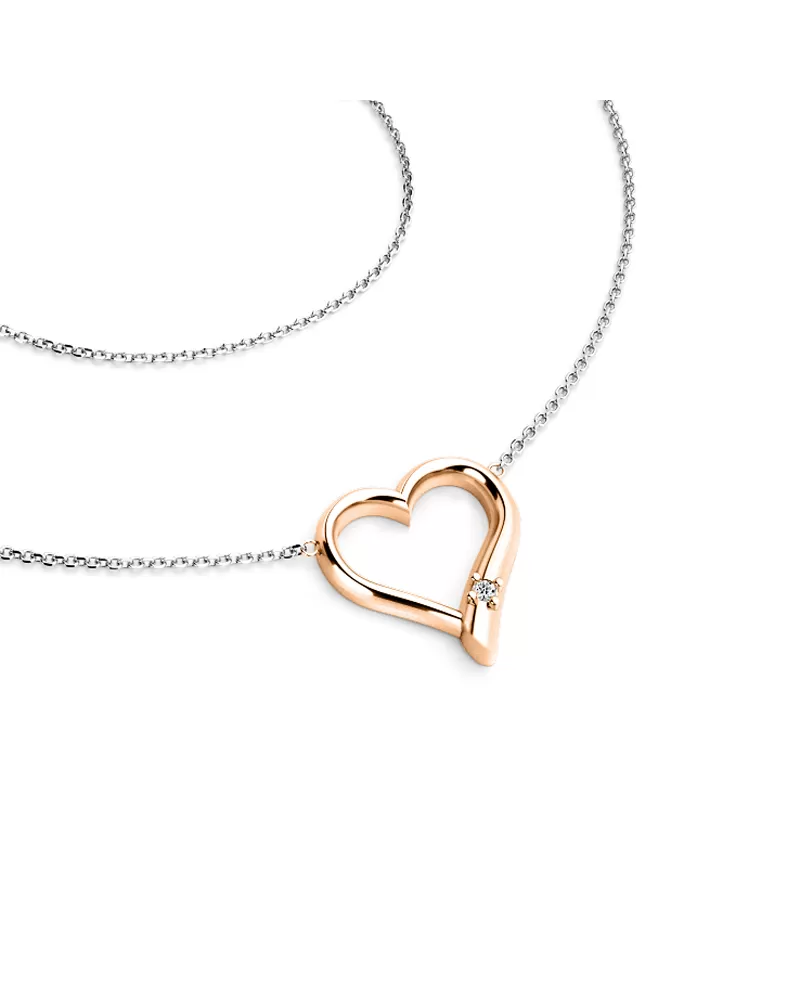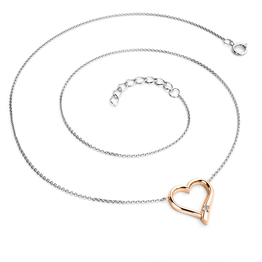 Dámsky náhrdelník zlatý mix 585/1000 prírodný diamant 0,012 ct G/SI srdce s briliantom 10917-NH01-BCV