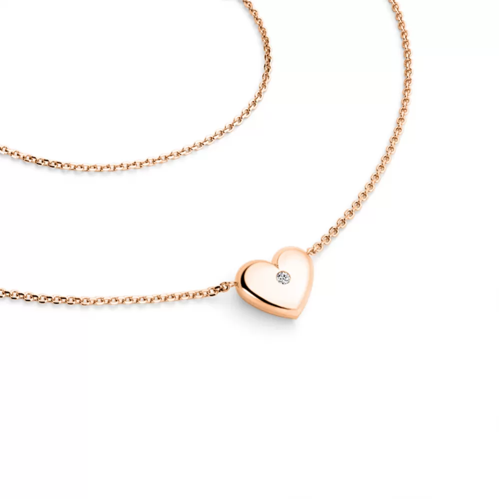 Elegantný náhrdelník je vyrobený z ružového štrnásťkarátového zlata - 585/1000 a tvorí ho retiazka typu anker s lesklými facetami na každom očku. Facety sú zhotovené diamantovým nástrojom, ktorý dodáva vzniknutým facetám maximálny lesk. Uprostred retiazky je napevno prívesok v tvare srdca v ktorom je vsadený jeden okrúhly diamant, vybrúsený briliantovým brusom. Briliantový brús zaisťuje diamantu maximálnu brilanciu vybrúsených facet, dokonale odráža svetlo a krásne žiari z každého uhla pohľadu! Vsadzovanie diamantov vykonávajú naši najskúsenejší majstri zlatníci ručne pod mikroskopom s presnosťou na 0,01mm a preto nehrozí vypadnutie kamienkov ako to býva pri strojne vyrábaných šperkoch.