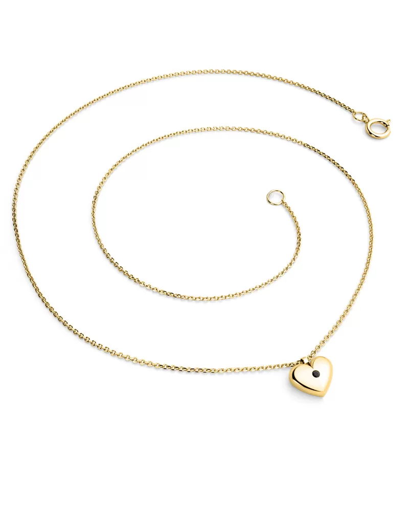 Elegantný náhrdelník je vyrobený zo žltého štrnásťkarátového zlata - 585/1000 a tvorí ho retiazka typu anker s lesklými facetami na každom očku. Facety sú zhotovené diamantovým nástrojom, ktorý dodáva vzniknutým facetám maximálny lesk. Uprostred retiazky je prívesok v tvare srdca v ktorom je vsadený jeden okrúhly čierny diamant, vybrúsený briliantovým brusom. Vsadzovanie diamantov vykonávajú naši najskúsenejší majstri zlatníci ručne pod mikroskopom s presnosťou na 0,01mm a preto nehrozí vypadnutie kamienkov ako to býva pri strojne vyrábaných šperkoch.