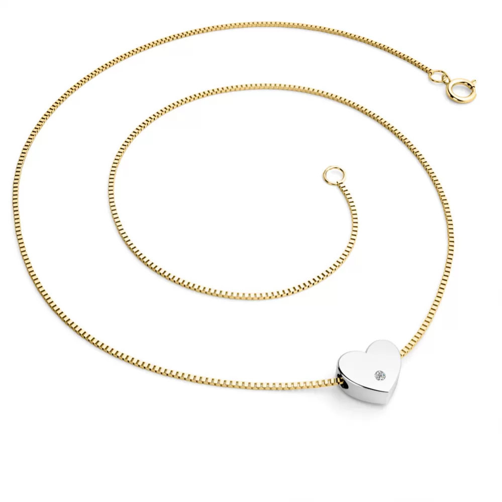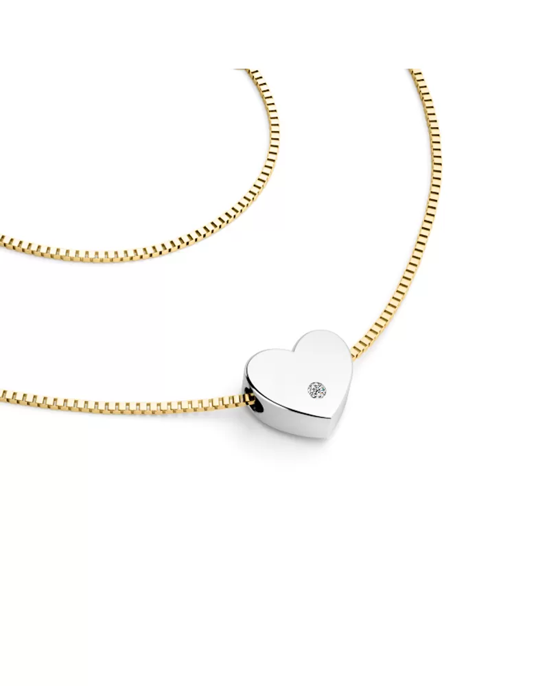 Elegantný náhrdelník je vyrobený zo štrnástich zlatých - 585/1000 a pozostáva z benátskeho reťazca - kocky žltého zlata a srdca bieleho zlata, ktoré beží v reťazci - je „vypnuté“. V srdci je nastavený jeden okrúhly diamant, zem s brilantným brúsením. Brilantná Brillia poskytuje diamantovú maximálnu brilanciu leštenej aspektu, dokonale odráža svetlo a krásne svieti zo všetkých pohľadov! Diamantové nastavenie vykonávajú naši najskúsenejší majstri ručne ručne pod mikroskopom s presnosťou 0,01 mm, a preto neexistuje riziko, že kamene padajú ako strojové šperky. Celý náhrdelník vyzerá jemne a elegantný dojem.