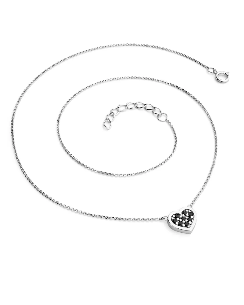 Náhrdelník bieleho zlata so srdcom s čiernymi brilantmi 10881-NH01-B-Black