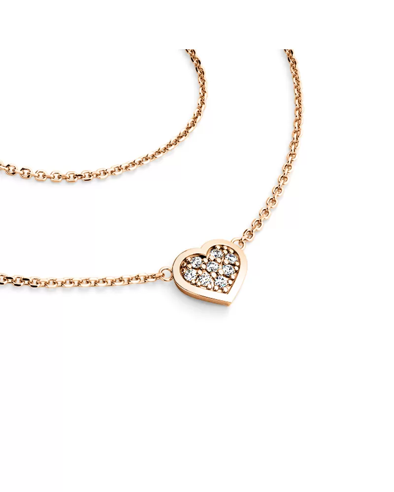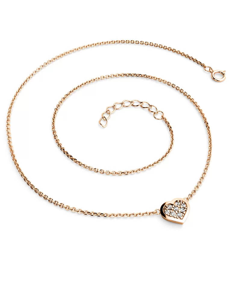 Jednoduchý elegantný náhrdelník tvorí retiazku typu anker s lesklými facetami na každom očku. Facety sú zhotovené diamantovým nástrojom, ktorý dodáva vzniknutým facetám maximálny lesk. Uprostred náhrdelníka je vložené srdiečko. Srdce je symbolom lásky, takže ak chcete svoju milú zaujať a vyznať jej lásku, alebo svojej blízkej osobe ukázať, ako ju máte radi a záleží vám na ňu, tento náhrdelník je presne to, čo hľadáte! V srdiečku je vsadených osem okrúhlych diamantov, vybrúsených okrúhlym briliantovým brusom, ktorý zaisťuje maximálnu brilanciu vybrúsených facet zo všetkých uhlov pohľadu! Vsadzovanie diamantov vykonávajú naši najskúsenejší majstri zlatníci ručne pod mikroskopom s presnosťou na 0,01mm a preto nehrozí vypadnutie diamantov ako to býva pri strojne vyrábaných šperkoch.