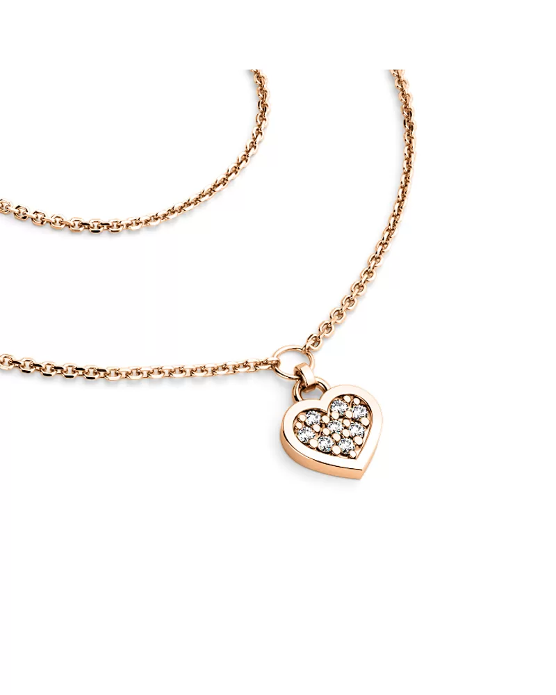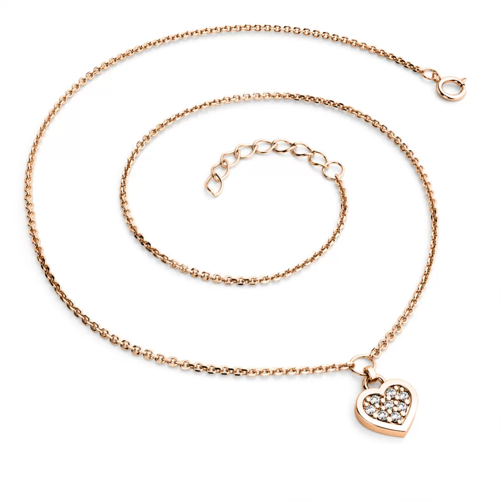 Ružový zlatý náhrdelník so srdiečkami so brilciami 10881-NH01A-CV
