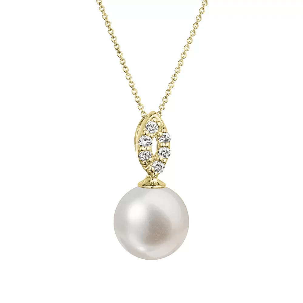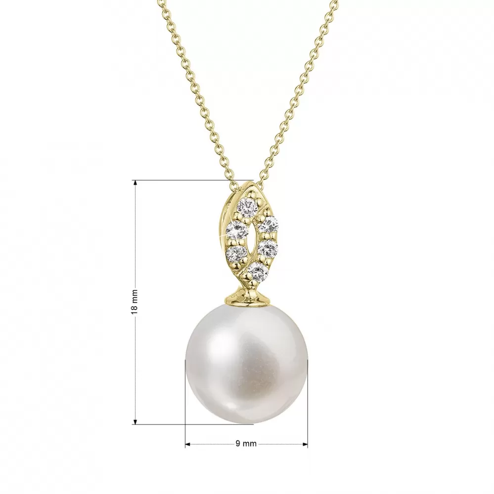 Zlatý 14 karátový náhrdelník s bielou riečnou perlou a briliantmi 92PB00040