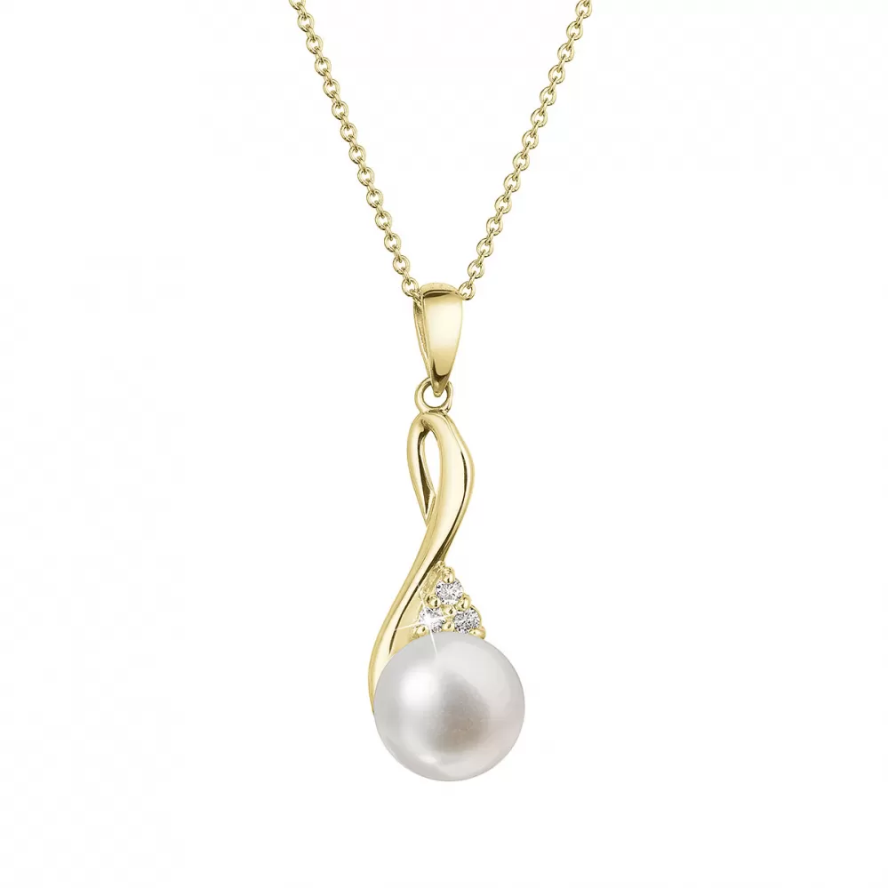 Zlatý 14 karátový náhrdelník s bielou riečnou perlou a briliantmi 92PB00050