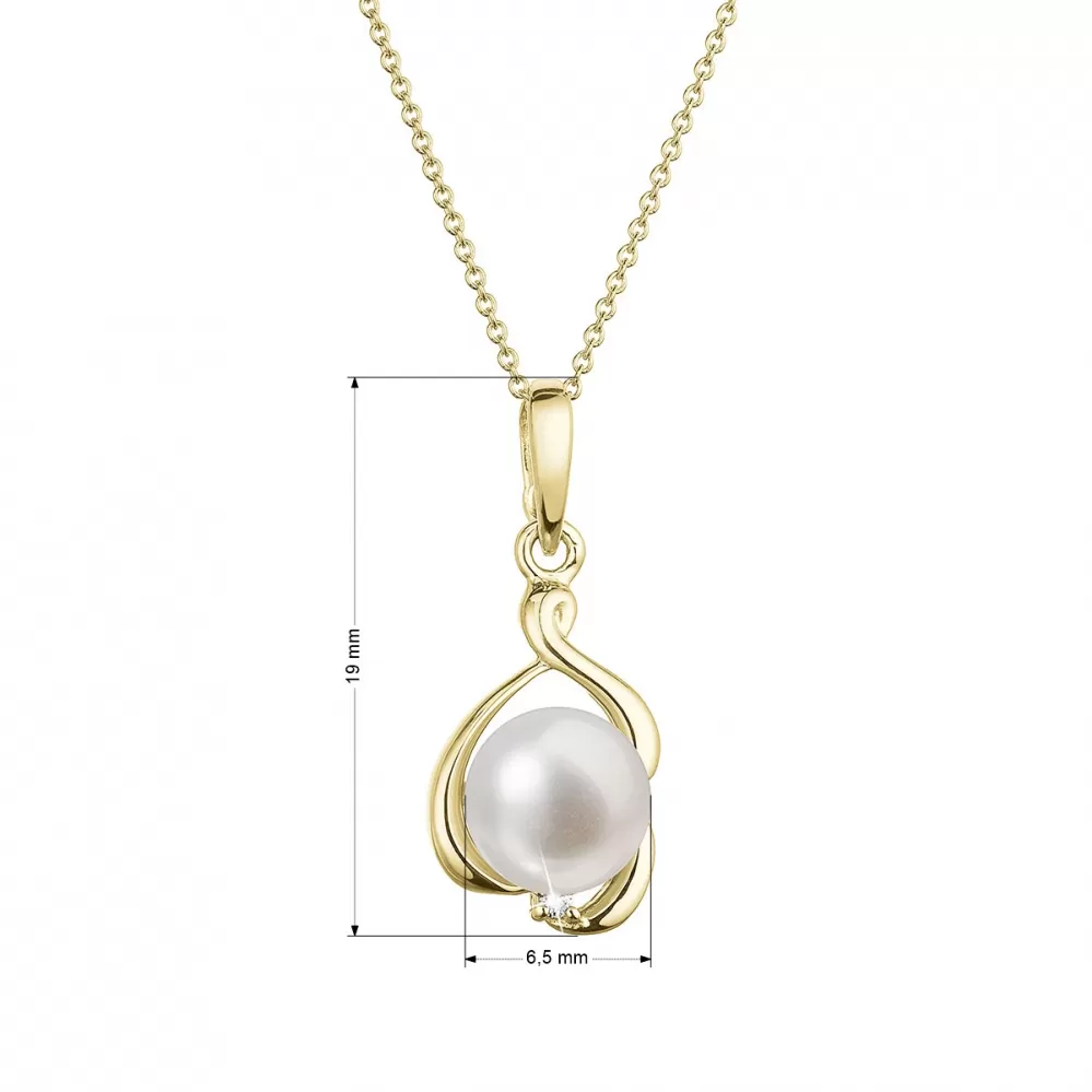 Zlatý náhrdelník s pravou bielou riečnou perlou a trblietavým briliantom Vám dodá šarm.