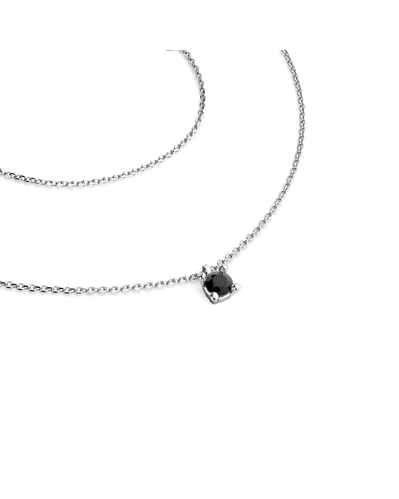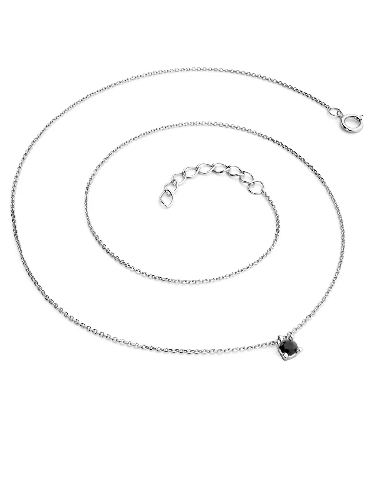 Jednoduchý elegantní náhrdelník je vyrobený z bílého čtrnáctikarátového zlata - 585/1000 a tvoří ho řetízek typu anker s lesklými facetami na každém očku. Facety jsou zhotoveny diamantovým nástrojem, který dodává vzniklým facetám maximální lesk. Na řetízku je zavěšen v pevné čtyřkrapnové korunce jeden kulatý černý diamant briliantového brusu. Vsazování diamantů provádějí naši nejzkušenější mistři zlatníci ručně pod mikroskopem s přesností na 0,01mm a proto nehrozí vypadnutí kamínků jako to bývá u strojně vyráběných šperků.