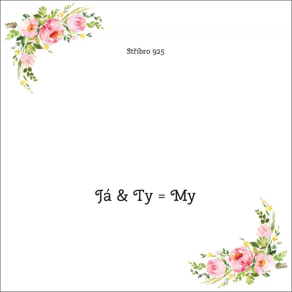Darčekový set obsahuje strieborný náhrdelník s dvoma jemnými srdiečkami. Náhrdelník je zavesený na darčekovej karte s nádherným prianím „Ja & Ty = My“.