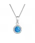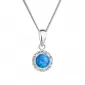 Náhrdelník obsahuje retiazku s okrúhlym príveskom. Šperk je vyrobený zo striebra rýdzosti 925/1000, ktoré prešlo povrchovou úpravou ródiom. Ródium chráni šperk proti sčerneniu, zožltnutiu i poškriabaniu. Prívesok je zdobený strong>modrým syntetickým opálom, ktorý je navyše olemovaný malými trblietavými Preciosa kryštálmi v bielej farbe. Môžete si k nemu vybrať aj rovnaké náušnice so zapínaním na puzetu alebo skrutku. Keďže šperk neobsahuje žiadny prídavok niklu, môžu ho bez obáv nosiť aj alergici.