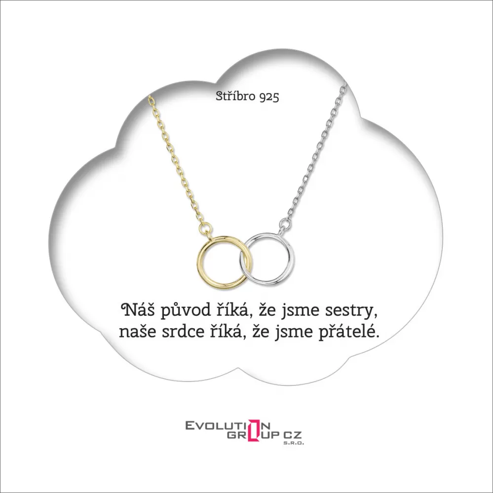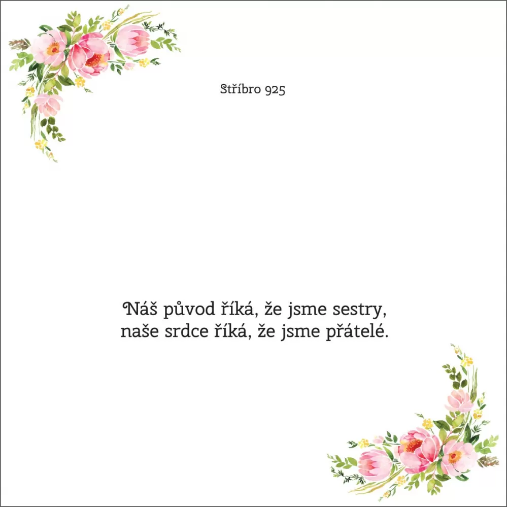 Darčekový set obsahuje pozlátený a strieborný náhrdelník DUET, ktorý je zavesený na darčekovej karte s nádherným prianím „Náš pôvod hovorí, že sme sestry, naše srdce hovorí, že sme priatelia“. Krásny symbolický darček pre sestru, ktorá je zároveň aj vašou najlepšou kamarátkou. Náhrdelník symbolizujúci okamihy, ktoré si chceme udržať v pamäti na nekonečne dlho.