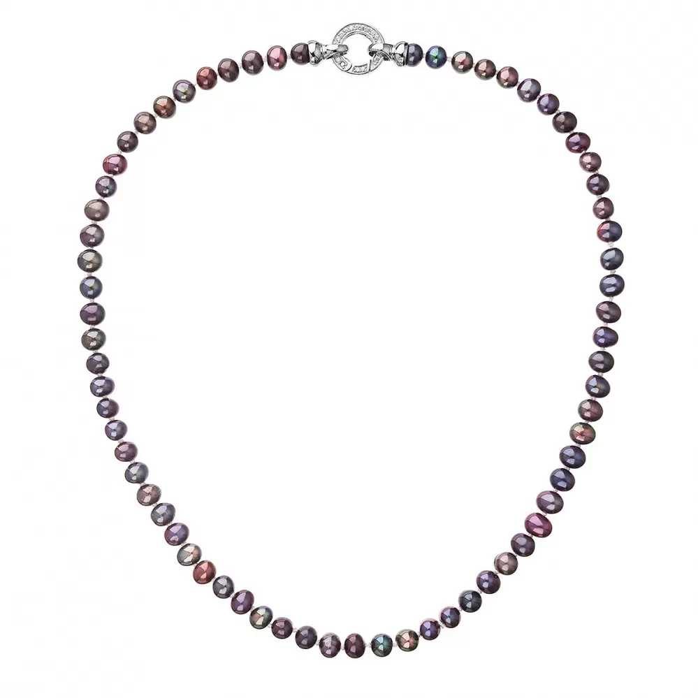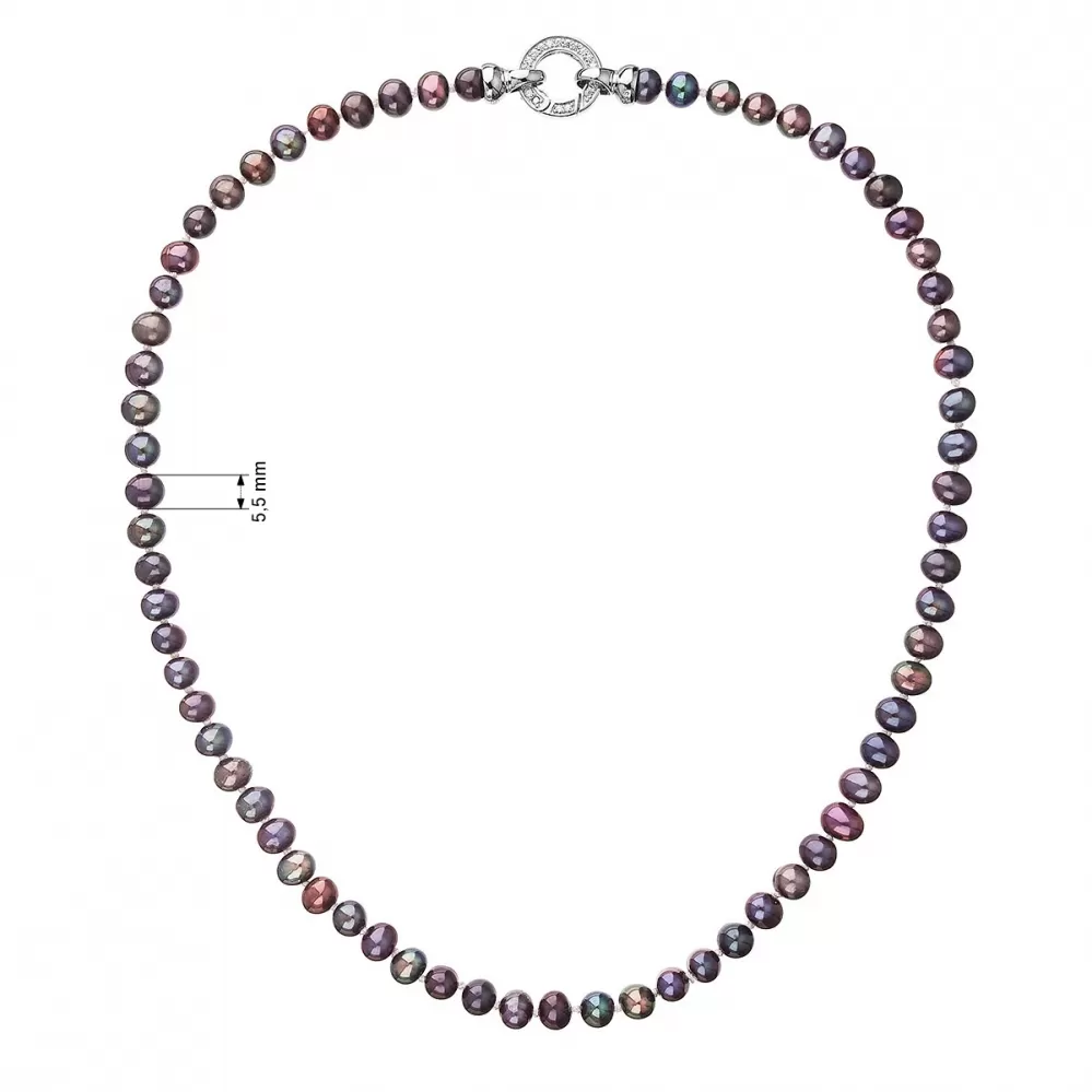 pravých riečnych perál v tmavo modrofialovej farbe. Každá perla je