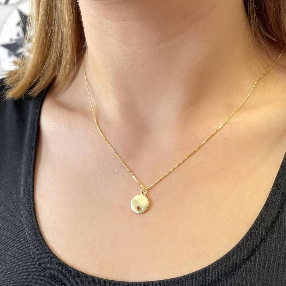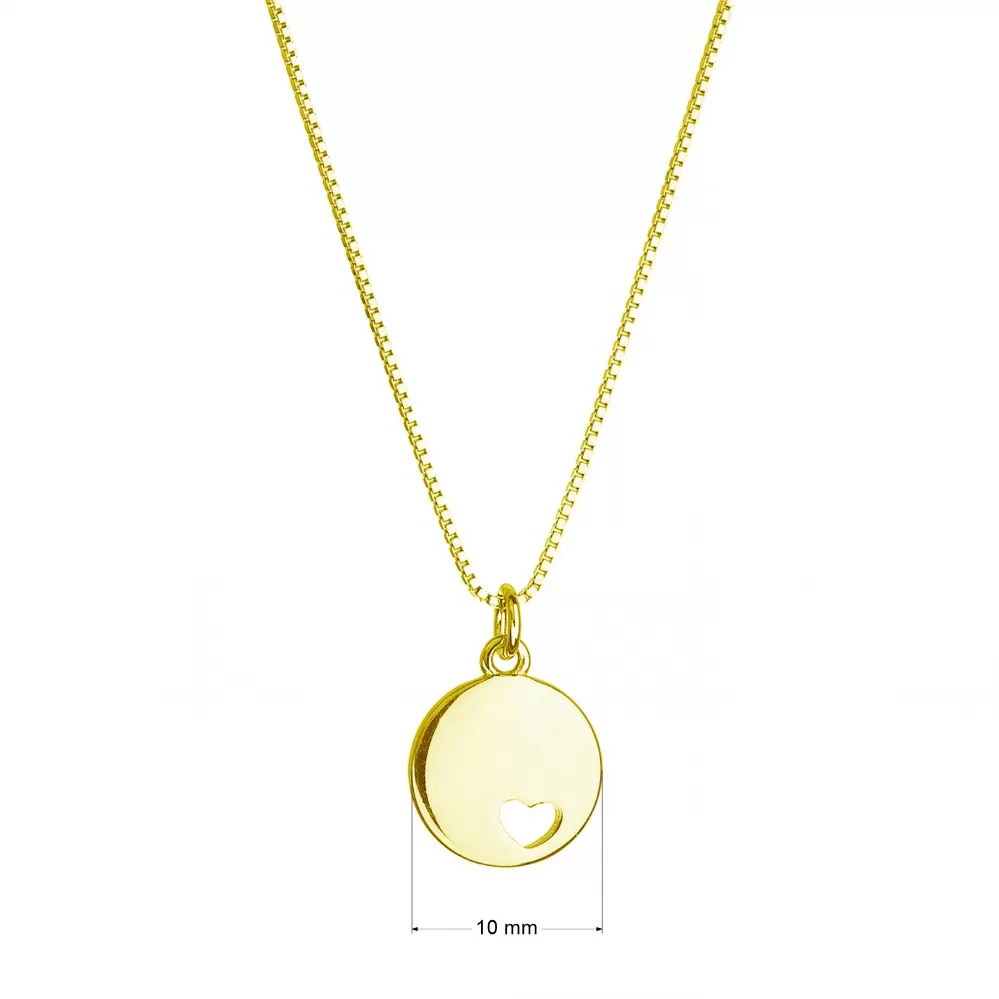 Elegantný pozlátený strieborný náhrdelník s moderným príveskom v tvare lesklej placky navyše s malým srdiečkom vo vnútri. Jednoduchý a nápaditý dizajn. Choďte s módou!