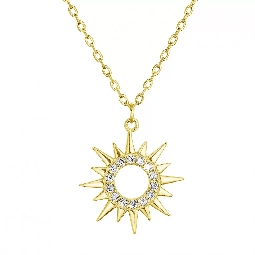 Pozlátený strieborný náhrdelník slnka so zirkónmi 12115.1