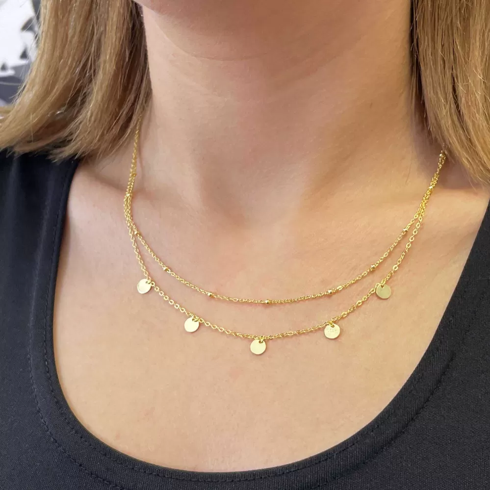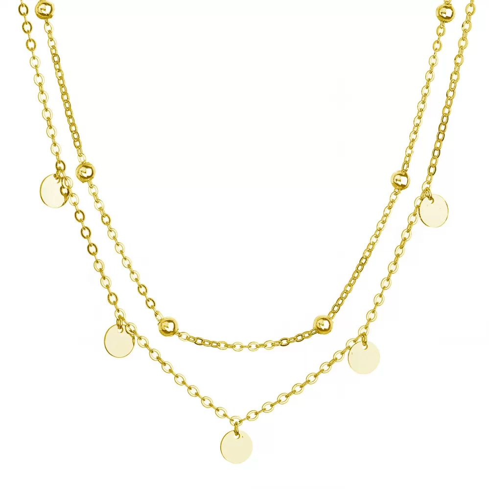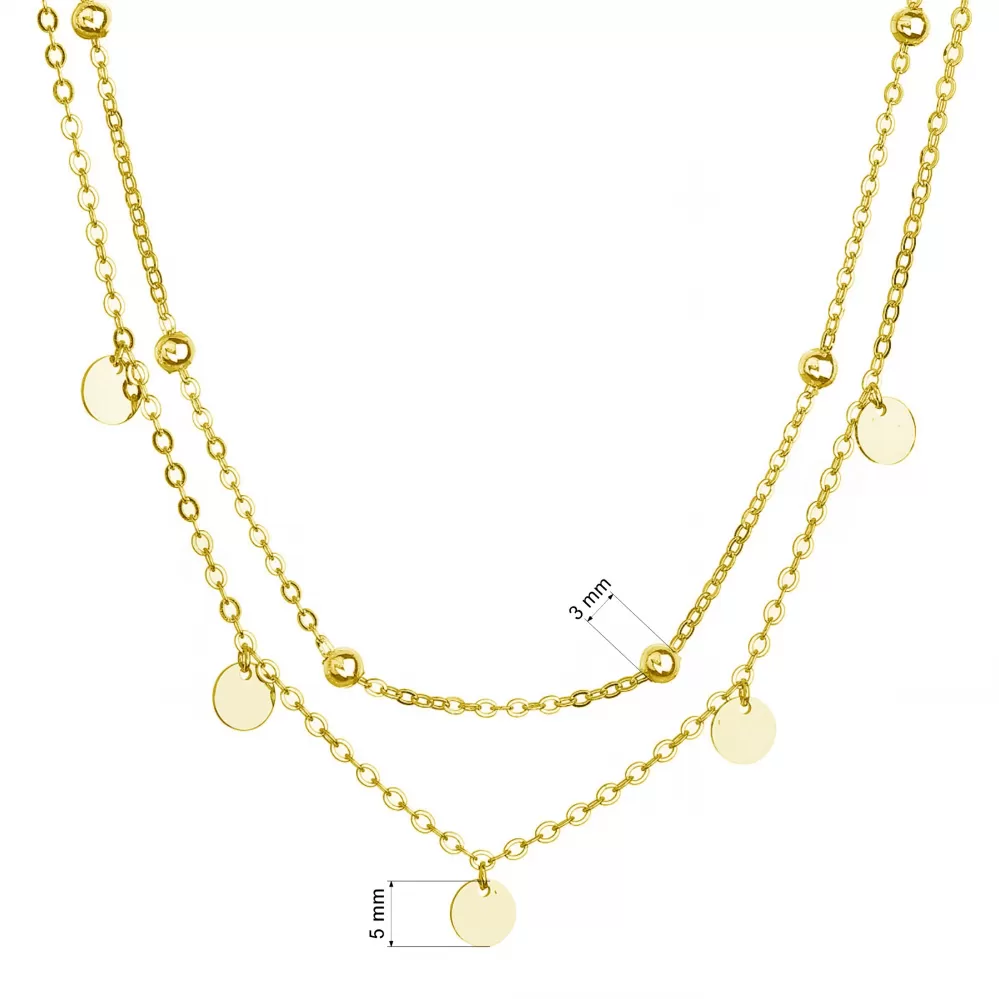 Pozlátený náhrdelník dvojradový malé placky a guličky 62007