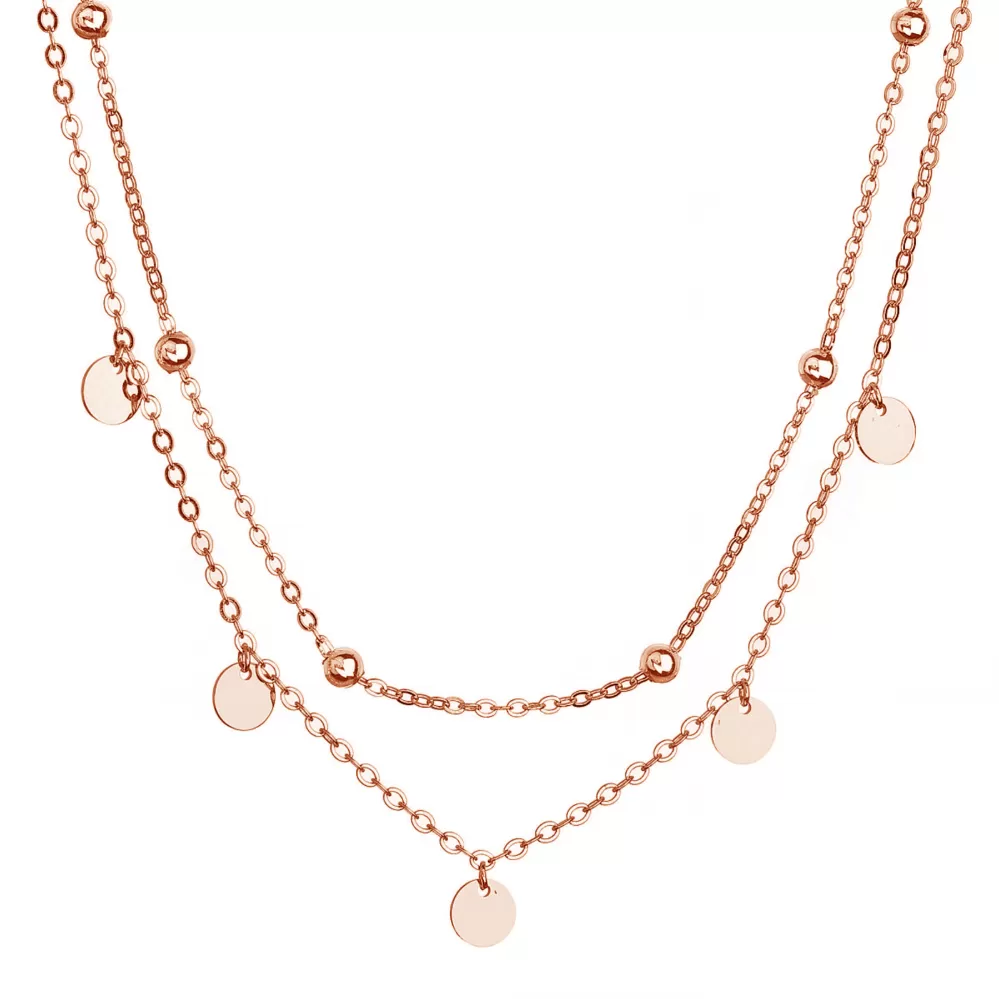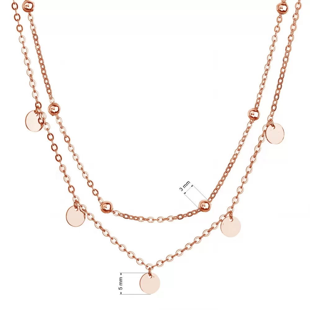 Pozlátený ROSE náhrdelník dvojradový malé placky a guličky 62007