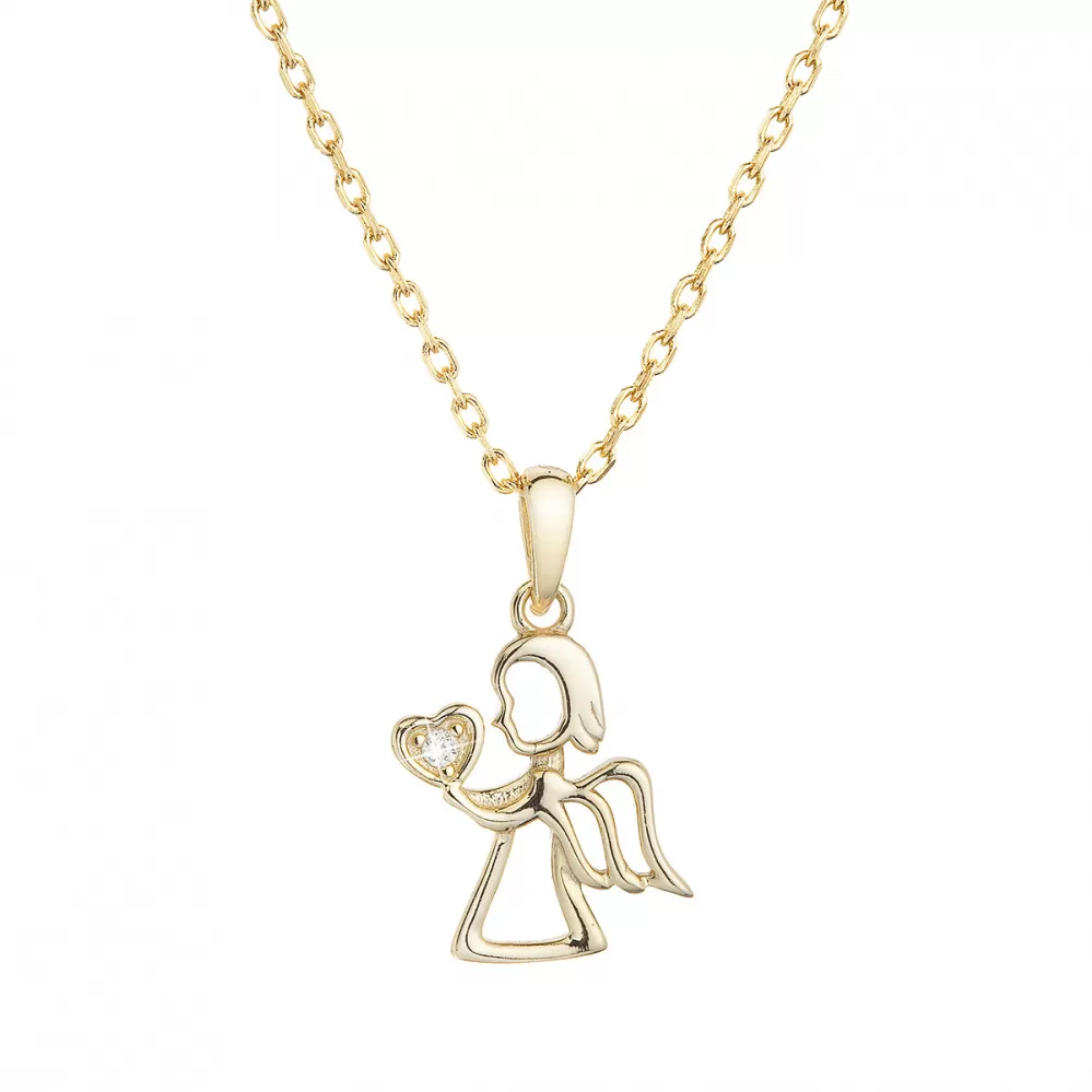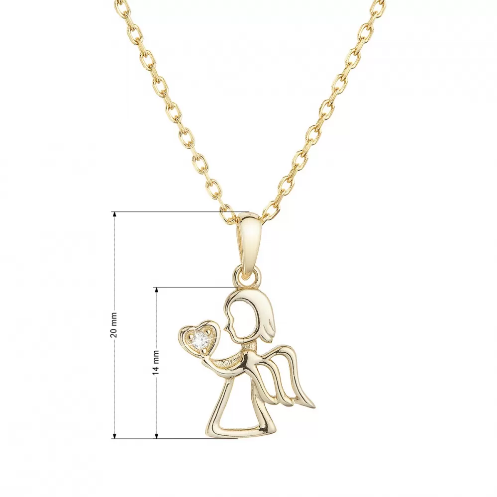 Pozlátený strieborný náhrdelník anjel so zirkónom v srdiečku 12073.1