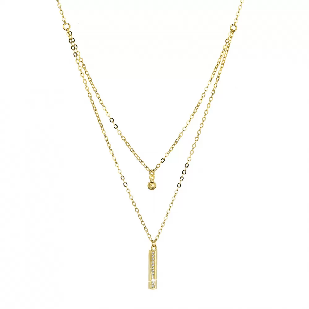 Pozlátený strieborný náhrdelník gulička a úzky obdĺžnik so zirkónmi biely 12057.1 crystal