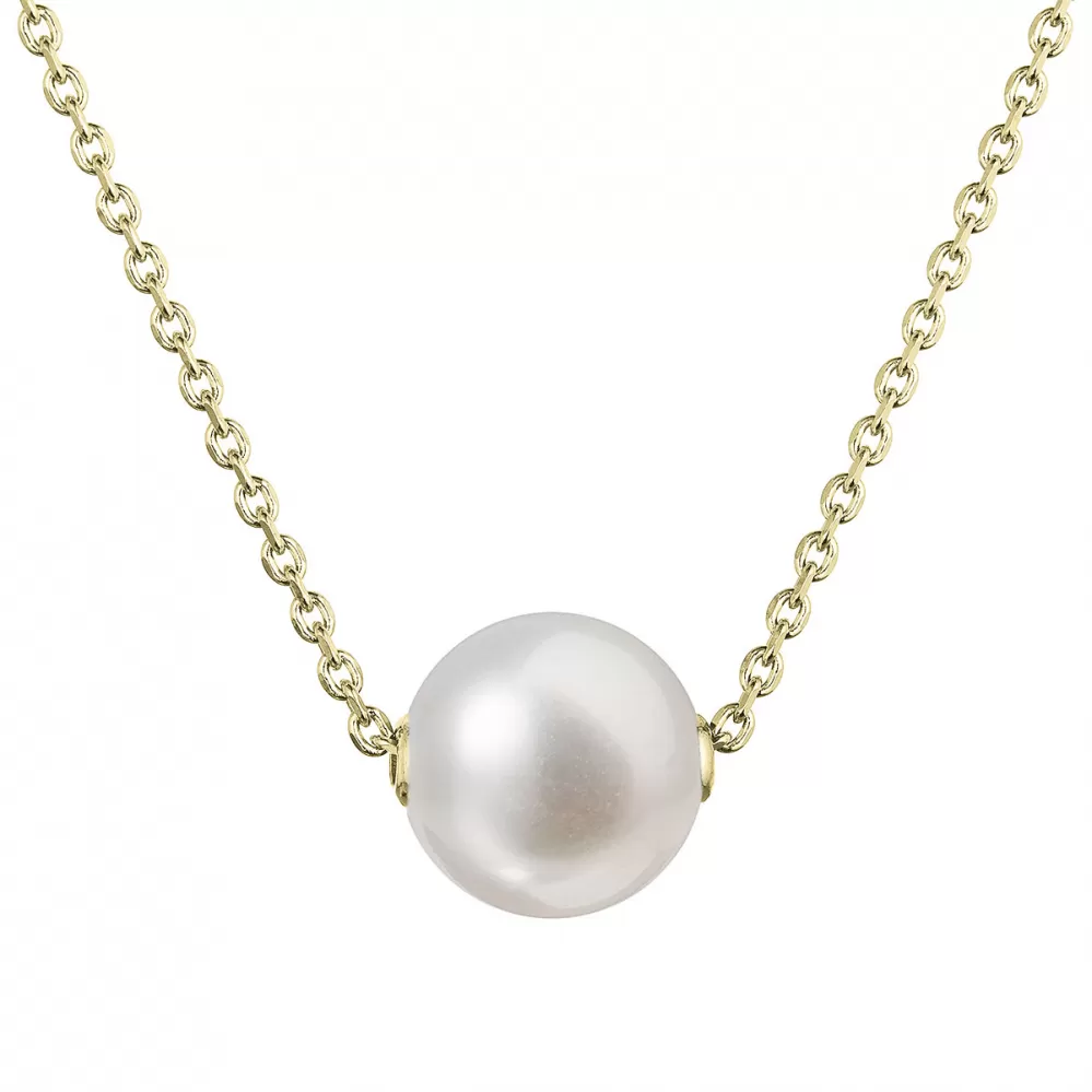 Pozlátený strieborný náhrdelník s pevnou bielou riečnou perlou na retiazke 22047.1