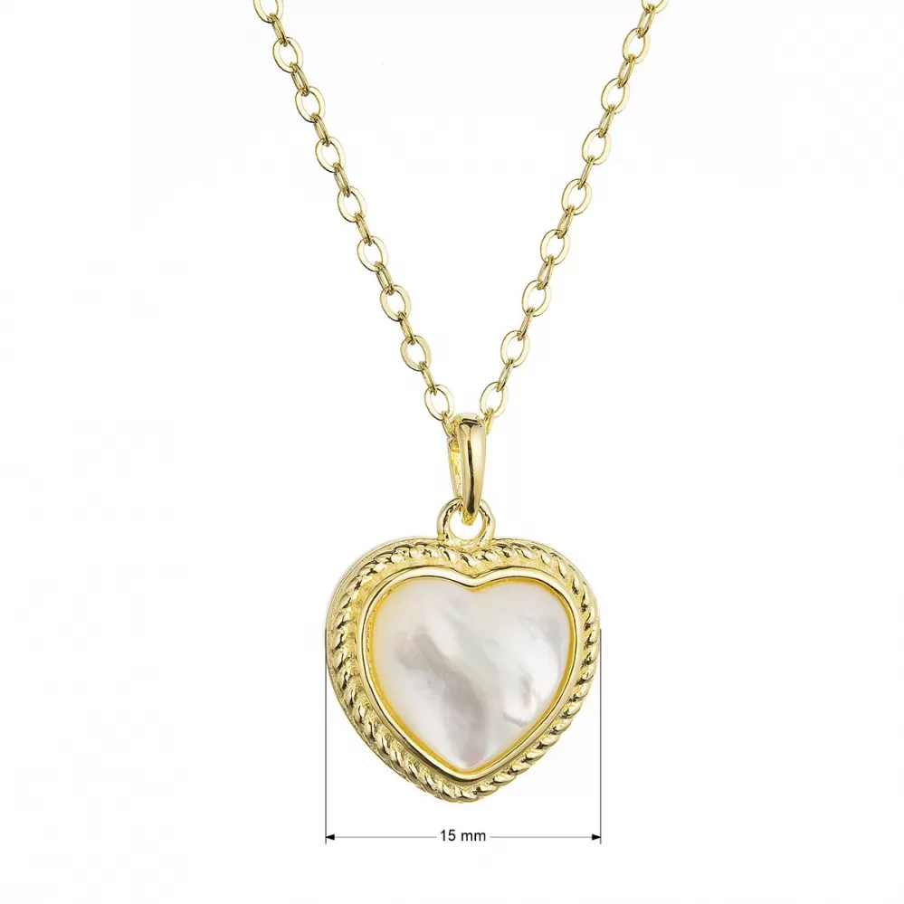 Náhrdelník v tvare srdca 12058.1 je vyrobený z pozláteného striebra o rýdzosti 925/1000. Náhrdelník má tvar srdiečka a je zdobený jemnou bielou perleťou. Šperk neobsahuje nikel, je tak vhodný aj pre alergikov.