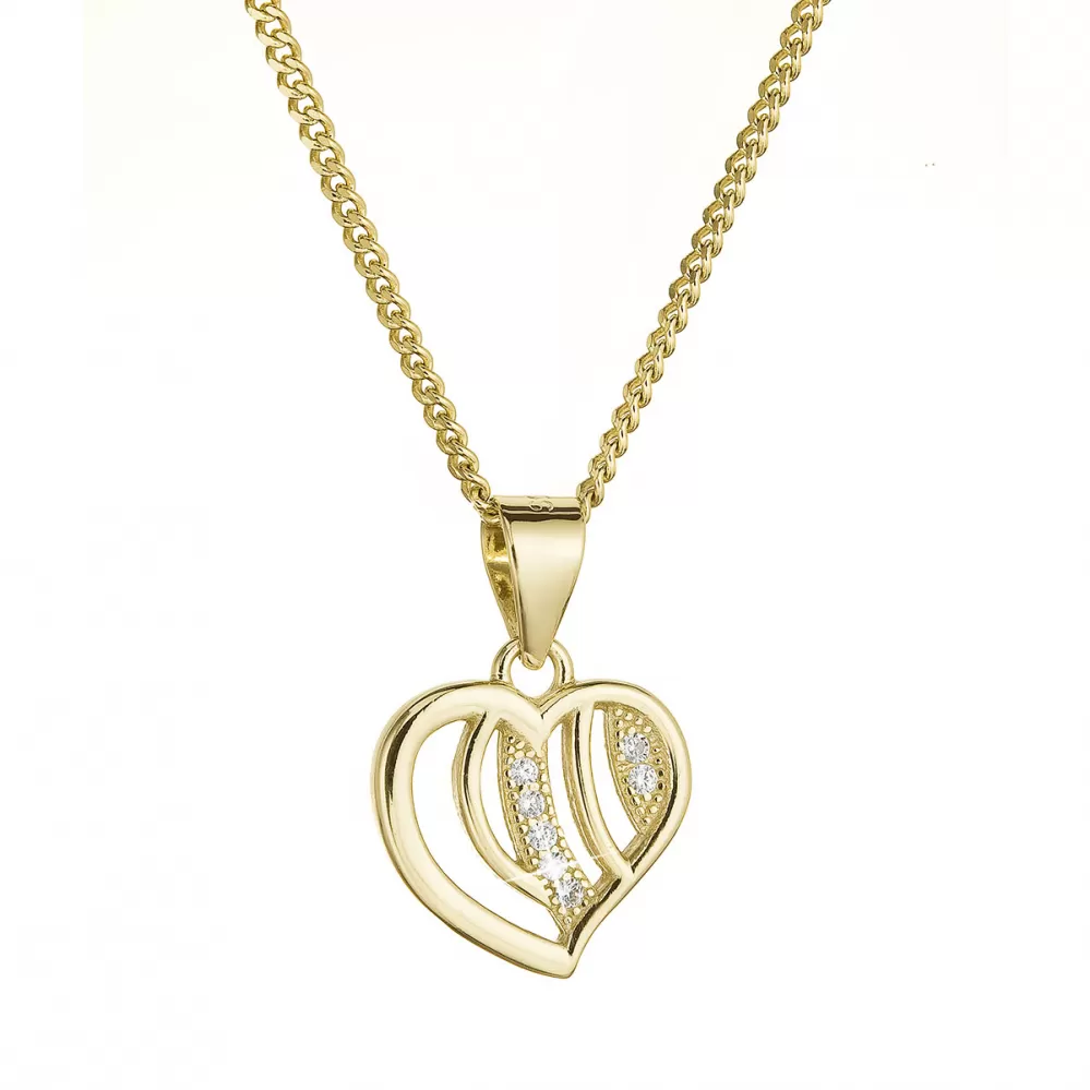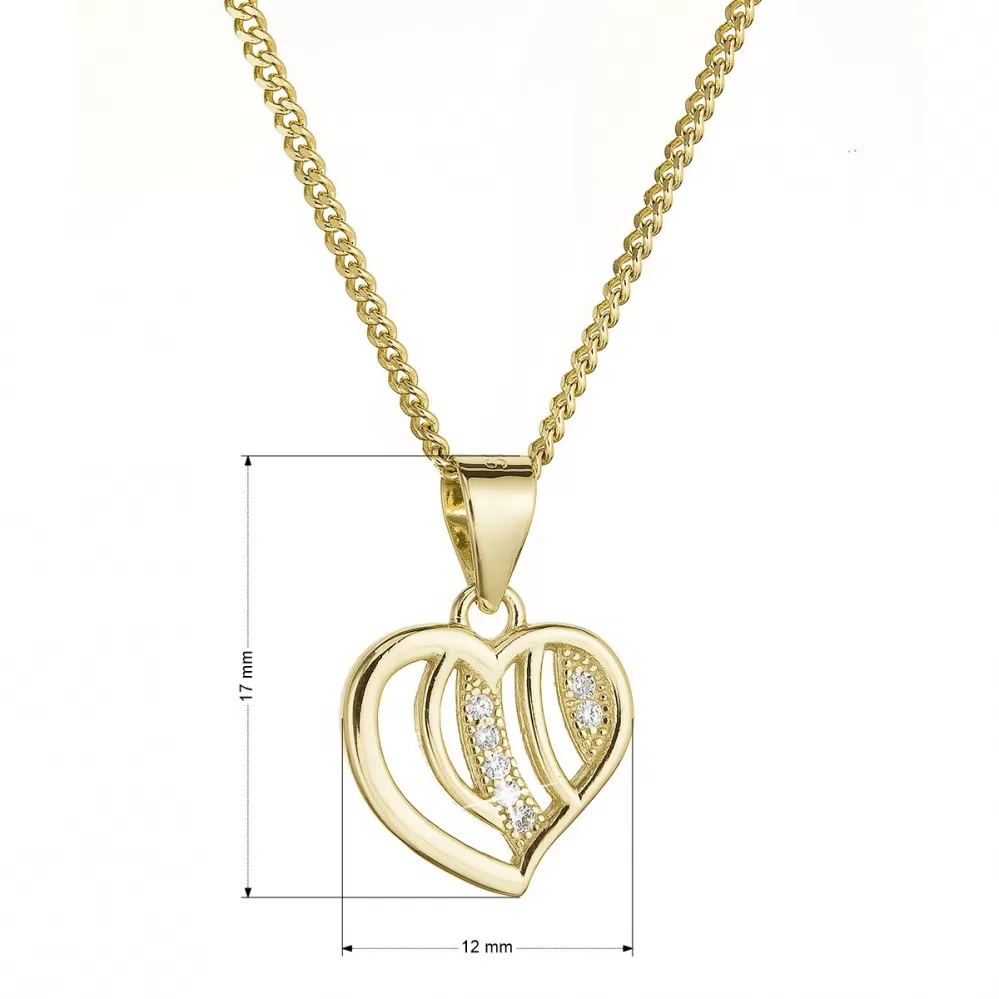 Pozlátený strieborný náhrdelník srdca so zirkónmi 12074.1