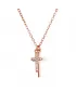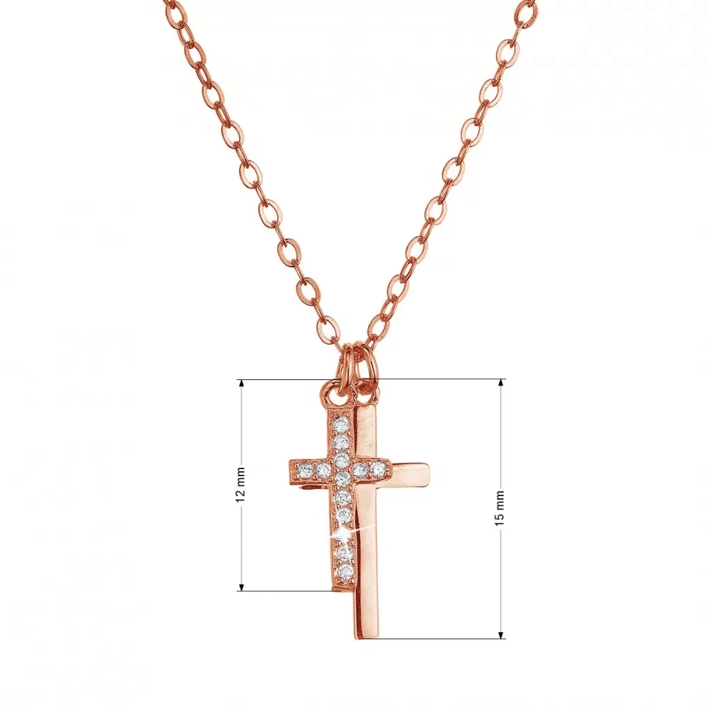 Rose Gold pozlátený náhrdelník 12059.1 v dĺžke 45 cm je zložený z retiazky a dvoch krížikov, z ktorej jeden je bohato ozdobený zirkónmi v bielej farbe. Na výrobu náhrdelníka bolo použité pozlátené striebro rýdzosti 925/1000. Náhrdelník je vhodný aj pre alergikov, neobsahuje totiž nikel.