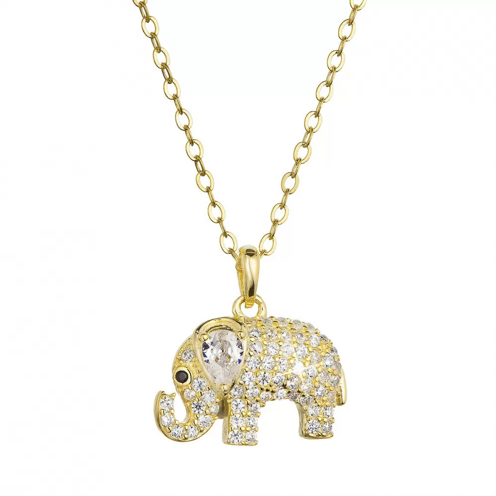 Darčekový set obsahuje pozlátený strieborný náhrdelník slon s bielymi zirkónmi, ktorý je zavesený na darčekovej karte s nádherným prianím „Pre šťastie“.