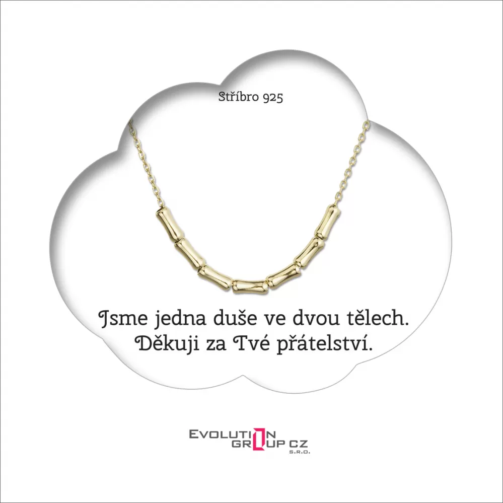 Darčekový set obsahuje pozlátený strieborný náhrdelník, ktorý je zavesený na darčekovej karte s nádherným prianím „Sme jedna duša v dvoch telách. Ďakujem za Tvoje priateľstvo“. Krásny vkusný darček pre vašu kamarátku, sestru alebo dcéru. Drobné gesto, ktoré urobí obrovskú radosť.