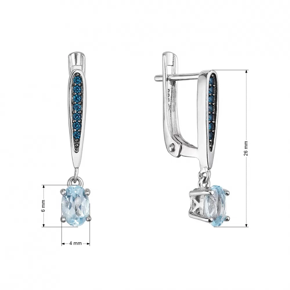 Náušnice s visiacim svetlo modrým kameňom jemne vyzdvihnú Váš pôvab. Náušnice 11487.3 majú veľmi zaujímavé prevedenie, kde úzka slzička je vysadená modrými kameňmi london nano a pod ňou sa hojdá krásny svetlo modrý topaz.