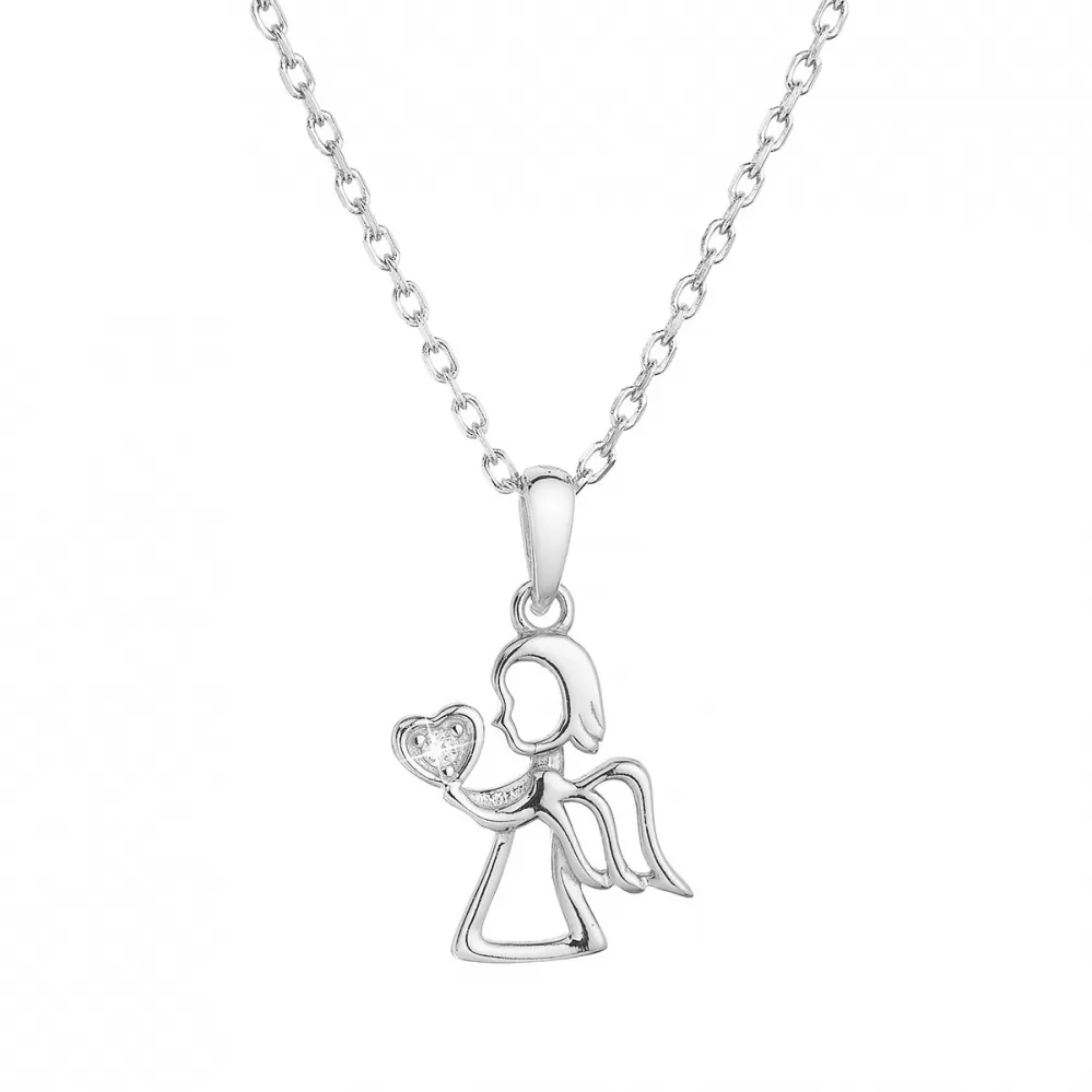 Strieborný náhrdelník anjel so zirkónom v srdiečku 12073.1