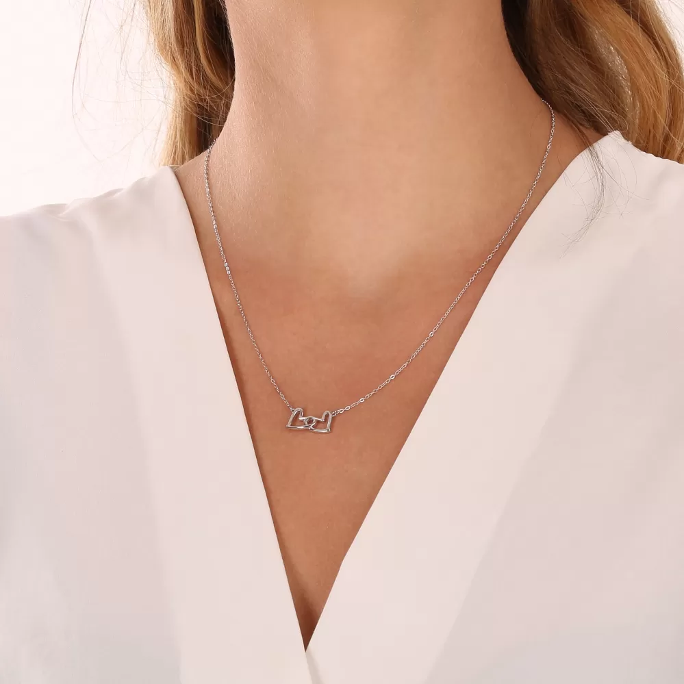 Strieborný náhrdelník dve spojené srdcia 62020