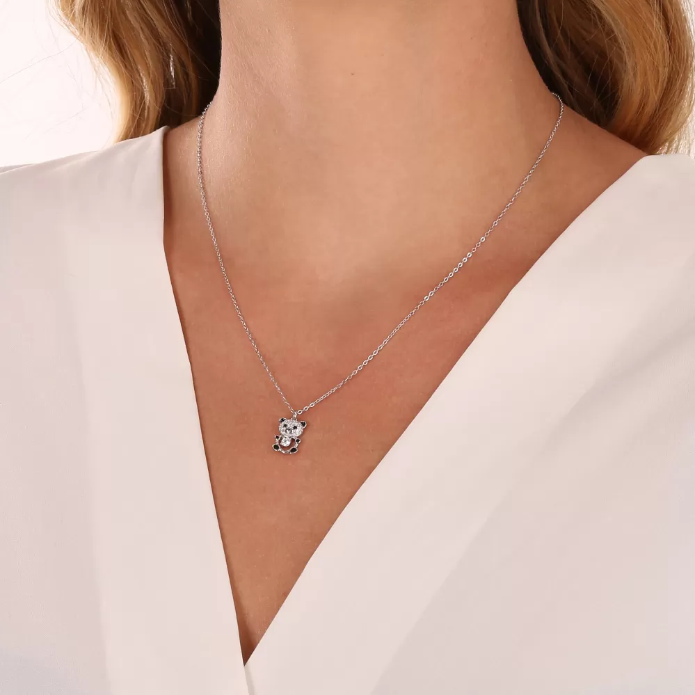 Strieborný náhrdelník medvedík so zirkónmi 12101.1 crystal