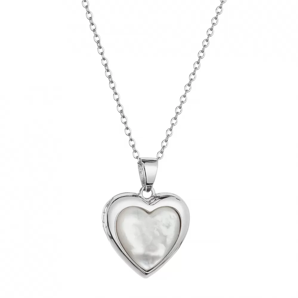 Luxusný strieborný náhrdelník s perleťovým srdcom, ktoré je možné otvoriť a vložiť do neho fotku svojich milovaných.