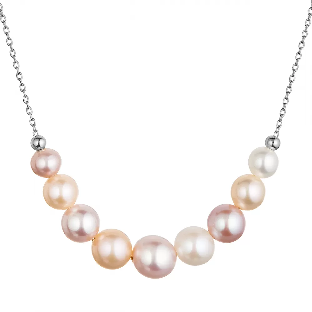 Strieborný náhrdelník s farebnými riečnymi perlami 22046.3 multi