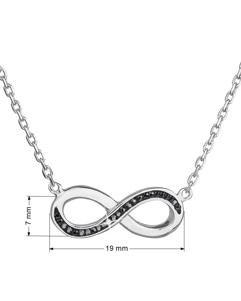 Parametre strieborného náhrdelníka s kryštálmi Swarovski čiernej infinity, osmička - nekonečno 32023.5