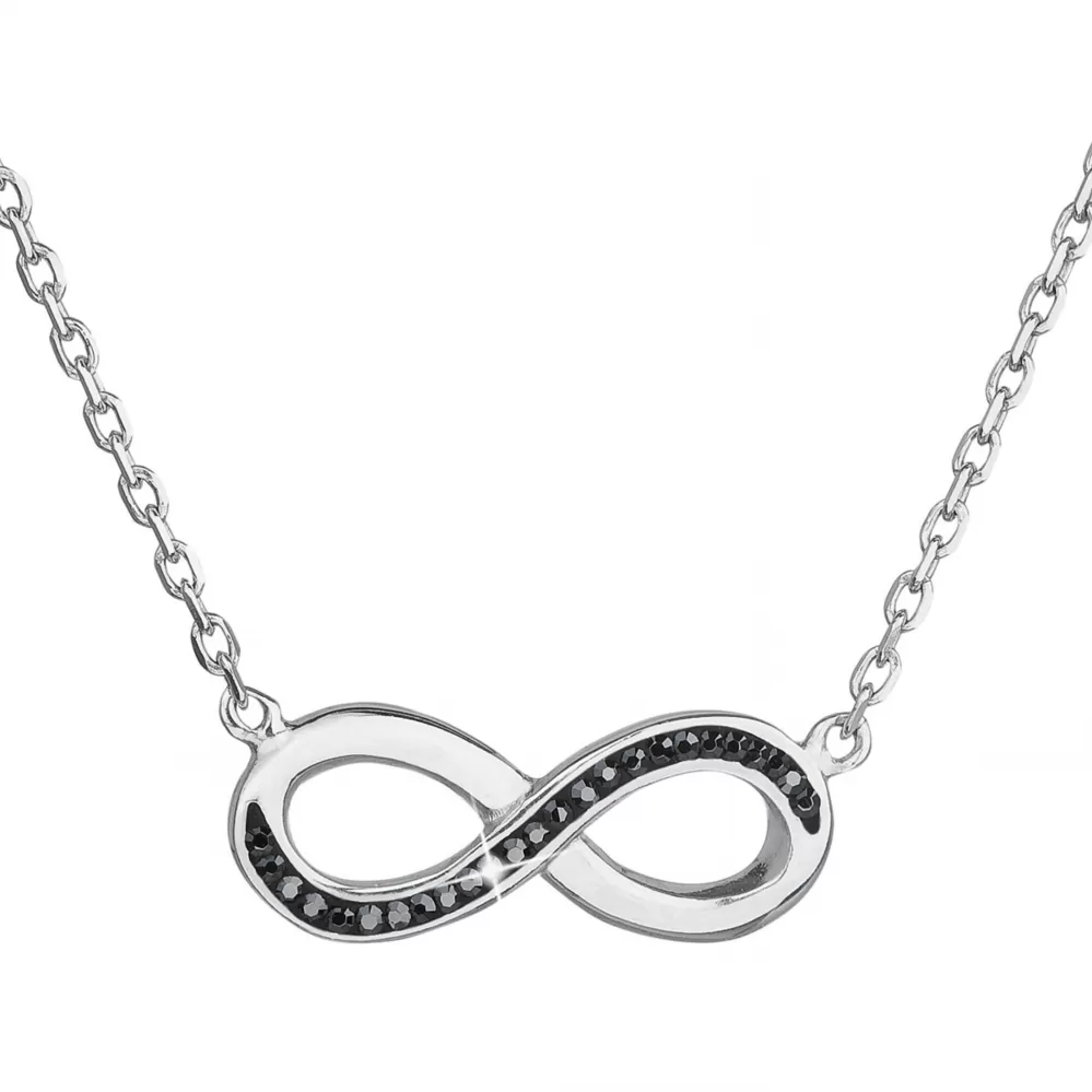 Strieborný náhrdelník s kryštálmi Swarovski čiernej infinity,osmička-nekonečno 32023.5