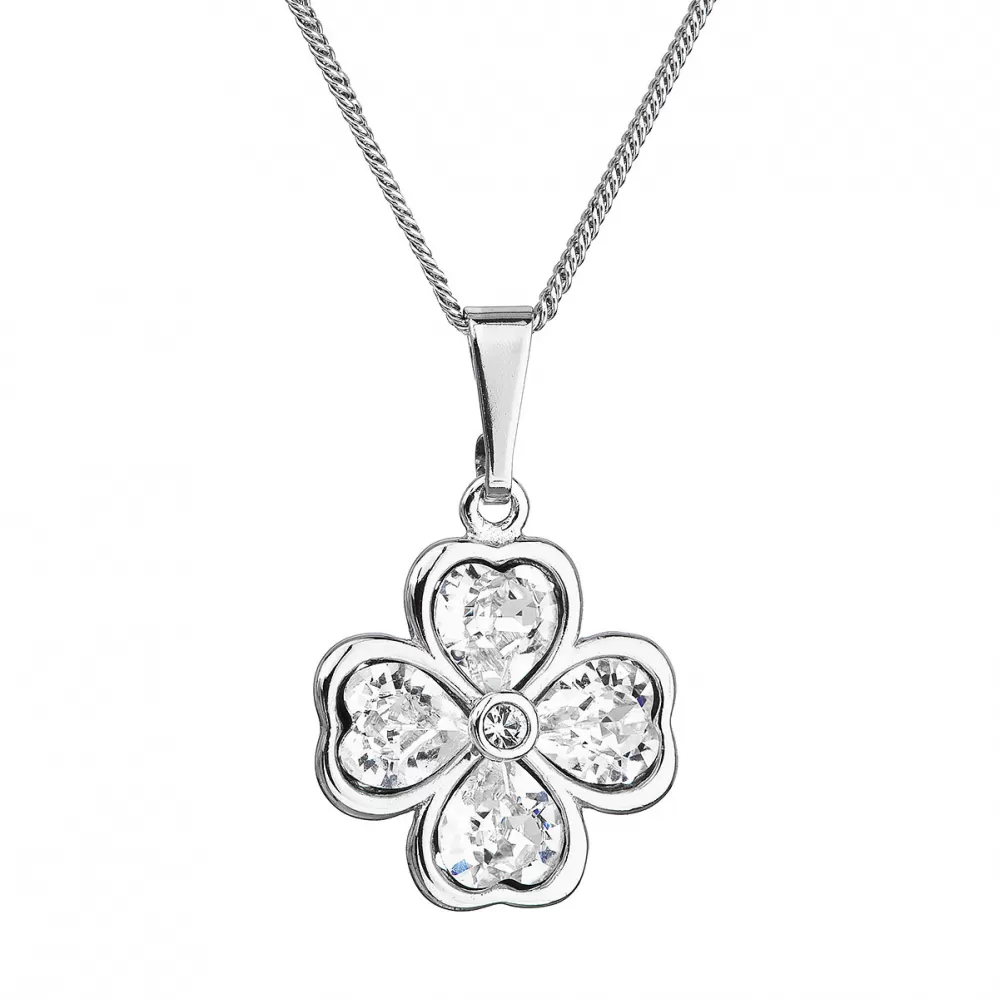 Strieborný náhrdelník s kryštálmi Swarovski štvorlístok 32085.1 crystal