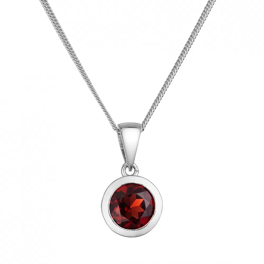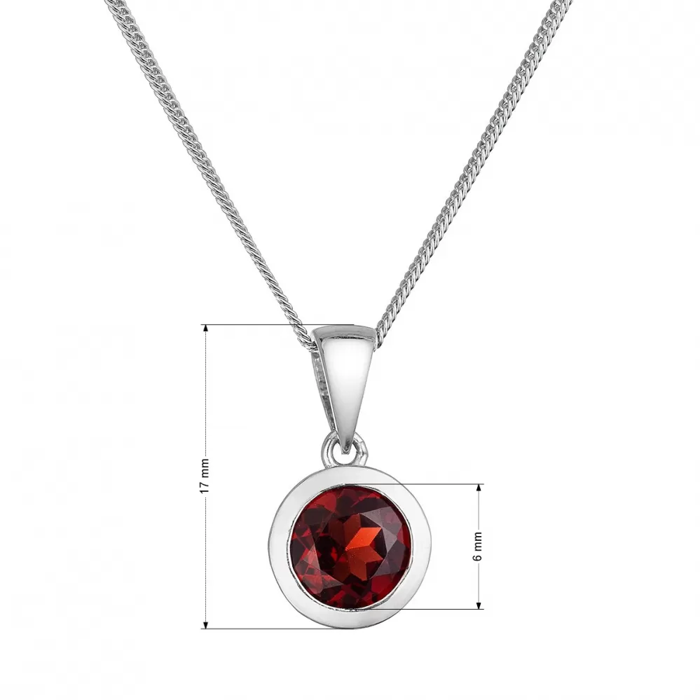 okrúhlym pravým granátom. Priemer kameňa je 6 mm a dĺžka striebornej retiazky je 45 cm.