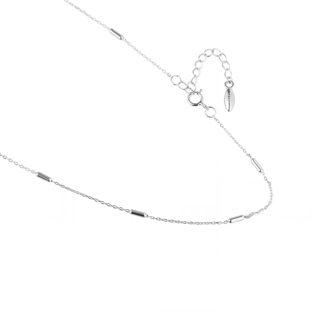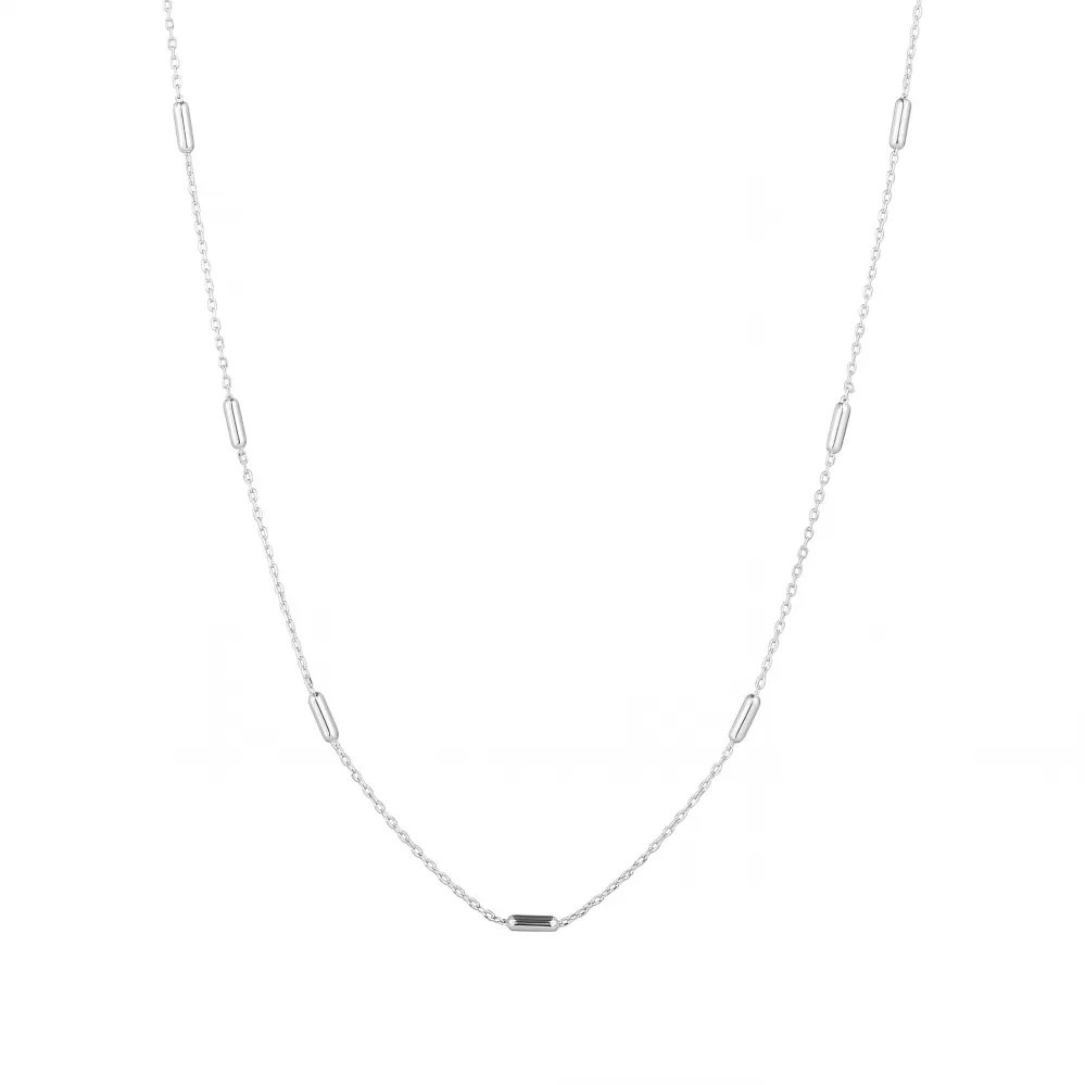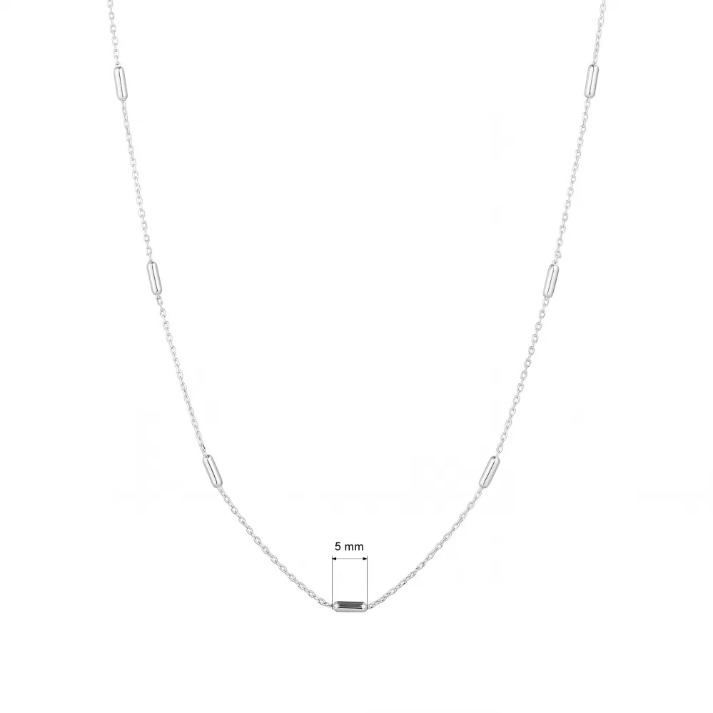 Táto decentná retiazka očarí svojou rafinovanou jednoduchosťou. Retiazka je v pravidelných intervaloch ozdobená miniatúrnymi striebornými valčekmi. Tie sú hladké a lesklé a vytvárajú pôvabný kontrast voči jemným článkom retiazky. Striedanie valčekov a retiazky vytvára efektný dekoratívny vzor plný vzdušnosti a ľahkosti. Celý šperk vďaka tomu pôsobí nevtieravo, ale napriek tomu veľmi elegantne.