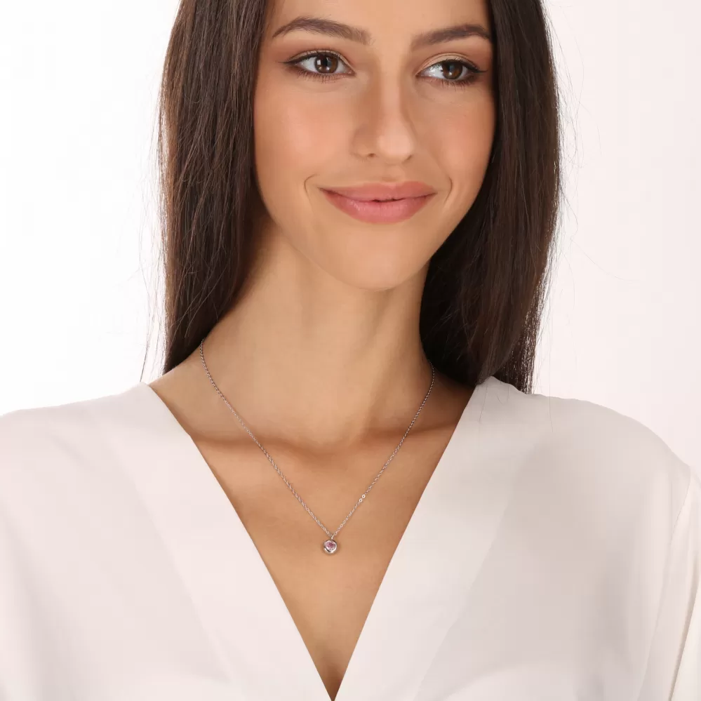 Strieborný náhrdelník s ružovým zirkónom 12117.3 rose