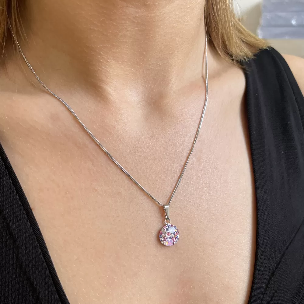 Strieborný náhrdelník so Swarovski kryštálmi okrúhly ružový 32086.3 magic rose